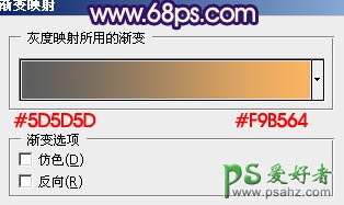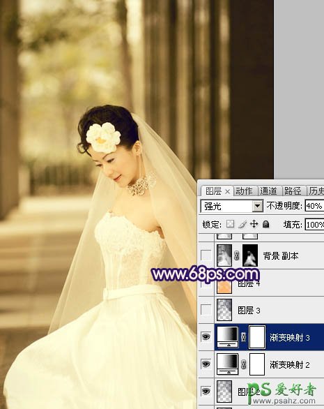 5、创建渐变映射调整图层,颜色设置如图7,确定后把图层混合模式改为“强光”,不透明度改为:40%,效果如图8。
