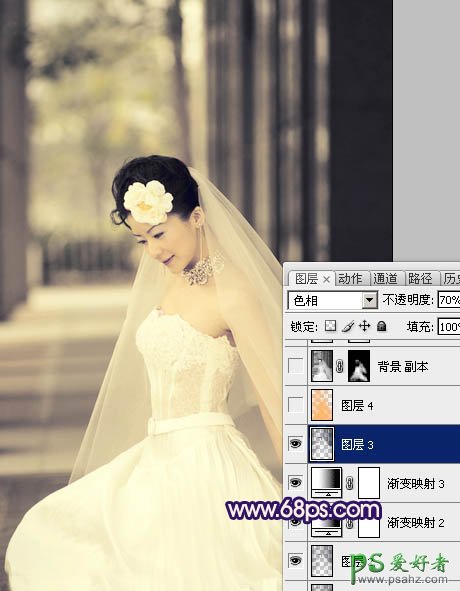 6、按Ctrl + Alt + ~ 调出高光选区,按Ctrl + Shift + I 反选,新建一个图层填充颜色:#0D173A,图层混合模式改为“色相”,不透明度改为:70%,效果如下图。