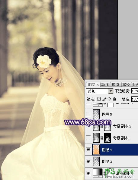 7、按Ctrl + Alt + ~ 调出高光选区,新建一个图层填充颜色:#FCB562,图层混合模式改为“滤色”,不透明度改为:10%,效果如下图。