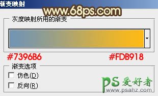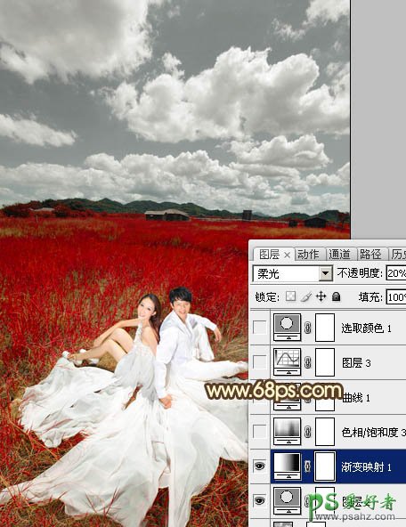 5、创建渐变映射调整图层,颜色设置如图9,确定后把图层混合模式改为“柔光”,不透明度改为:20%,如图10。