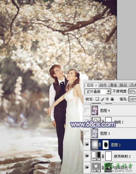 6、新建一个图层,简单给图片加上暗角,方法任选。