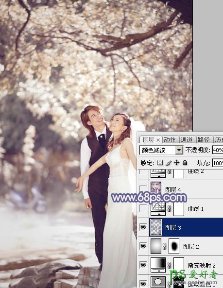 7、按Ctrl + Alt + ~ 调出高光选区,按Ctrl + Shift + I 反选,新建一个图层填充颜色:#31075B,图层混合模式改为“颜色减淡”,不透明度改为:40%,效果如下图。