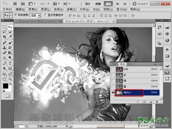 14、在“通道”调板中,可以看到新建的混合图像的“Alpha 1”通道。