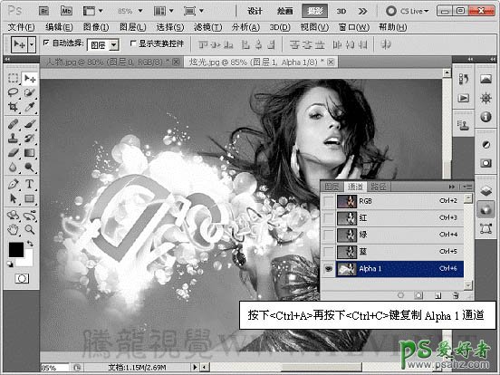 15、在“通道”调板中,复制“Alpha 1”通道。