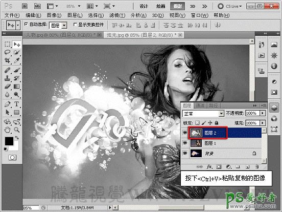 16、切换到“图层”调板,粘贴复制的图像。
