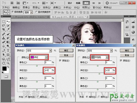 19、执行“图像”→“调整”→“可选颜色”命令,调整图像颜色。