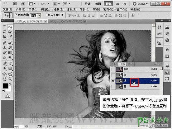 ”调板,选择“绿”通道将其复制。