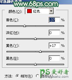 12、再创建可选颜色调整图层,对红色进行调整,参数设置如图19,效果如图20。