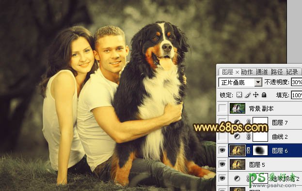 13、新建一个图层,盖印图层。图层混合模式改为“正片叠底”,不透明度改为:30%,加上图层蒙版,用黑色画笔把中间部分擦出来,效果如下图。