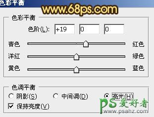 2、创建色彩平衡调整图层,对阴影,高光进行调整,参数设置如图3,4,效果如图5。