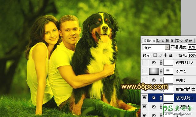 5、创建渐变映射调整图层,颜色设置如图11,确定后把图层混合模式改为“变亮”,不透明度改为:10%,效果如图12。