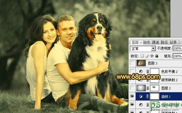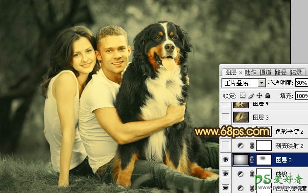 PS调色教程:给一对幸福的欧美情侣外景照调出暗黄色效果