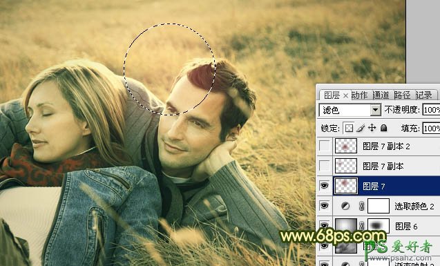 14、新建一个图层,混合模式改为“滤色”,把前景颜色设置为:#86161D,用画笔把下图选区部分涂上高光,其它部分可以按照自己的喜好添加高光。