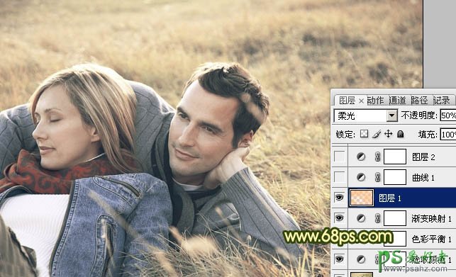 4、按Ctrl + Alt + ~ 调出高光选区,新建一个图层填充颜色:#FEC07E,图层混合模式改为“柔光”,不透明度改为:50%,效果如下图。