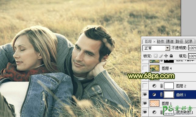 PS调色教程:给一对幸福的欧美情侣外景照调出暗黄色效果