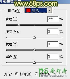 13、创建可选颜色调整图层,对红色进行调整,参数设置如图23,效果如图24。