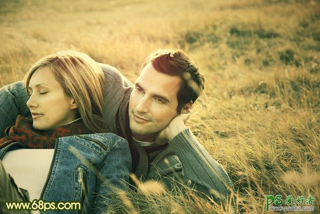 今天我们教大家学习的是一篇PS照片调色实例教程,PS调色教程:给一对幸福的欧美情侣外景照调出暗黄色效果,怀旧风格人物照片调色,本教程介绍简单的古典色调调色方法。大致过程:调色的时候先把图片的整体色调调成统一的暖色,局部可以加上一些暗绿或暗青色。然后再把图片柔化处理,适当加强一下图片的色彩层次及对比度即可。
