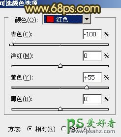 5、创建可选颜色调整图层,对红色进行调整,参数设置如图6,效果如图7。