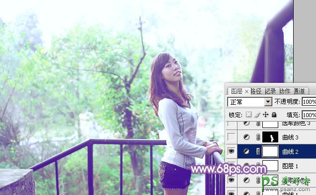 PS调色教程:给公园MM写真照调出蓝粉时尚效果