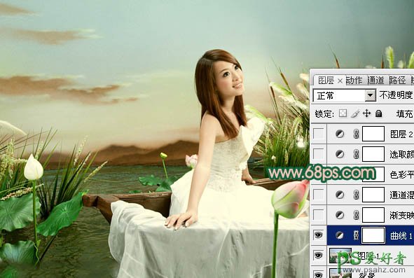 photoshop给甜美的荷花少女婚片写真照调出唯美色彩
