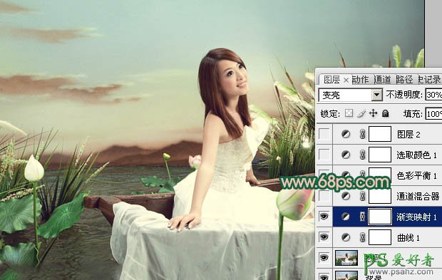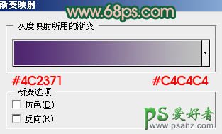 2、创建渐变映射调整图层,颜色设置如图3,确定后把图层混合模式改为“变亮”,不透明度改为:30%,效果如图4。