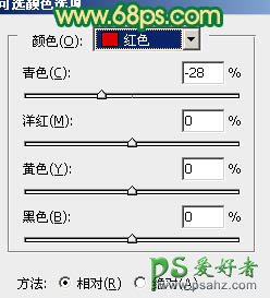 16、创建可选颜色调整图层,对红色进行调整,参数设置如图32,效果如图33。