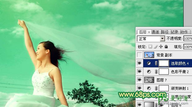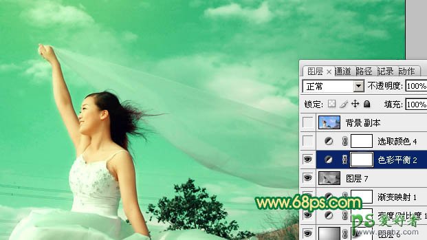 PS调色教程:给外景女孩儿调出个性的青绿色
