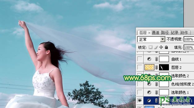 photoshop调出金色黄昏漂亮少女婚纱艺术照教程