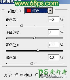 7、创建可选颜色调整图层,对红、绿、青进行调整,参数设置如图12 - 14,效果如图15。