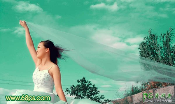 PS调色教程:给外景女孩儿调出个性的青绿色
