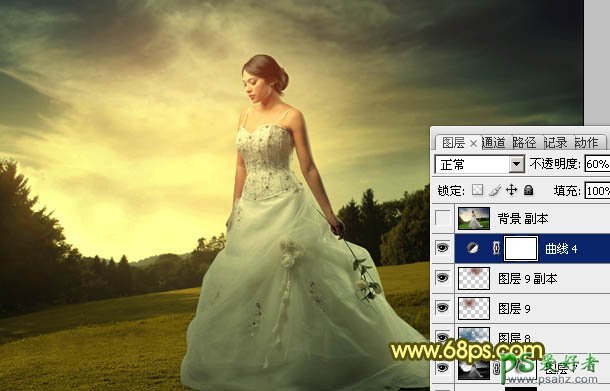 photoshop调出金色黄昏漂亮少女婚纱艺术照教程