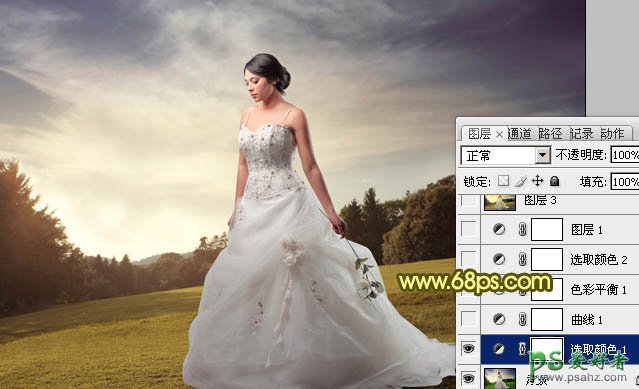 photoshop调出金色黄昏漂亮少女婚纱艺术照教程