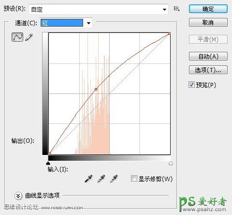 3、再次转入通道面板,载入红通道(CRTL+鼠标左键红通道层),得到选区后回到图层面板,执行选择-反选,然后建立曲线调整层,参数如下,黑线为RGB下调整,红线为红通道下,绿线为绿通道下,蓝线为蓝通道下。