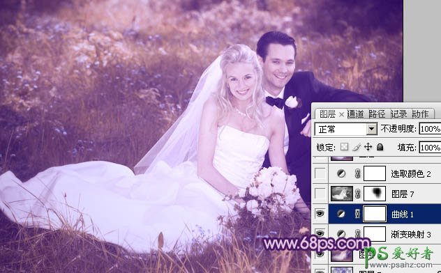 PS调色教程:给国外情侣婚片调出淡紫效果