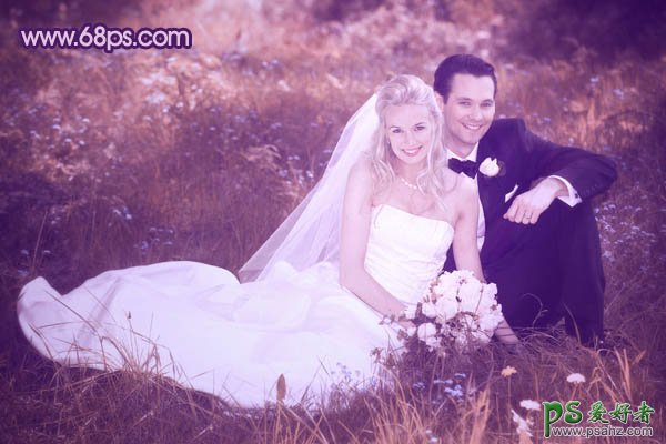 PS调色教程:给国外情侣婚片调出淡紫效果