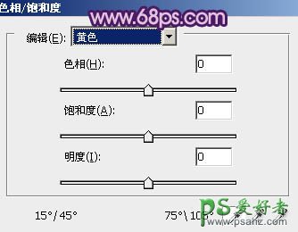 2、创建色相/饱和度调整图层,选择黄色,用吸管吸取背景草地的颜色再调整,参数设置如图3,效果如图4。