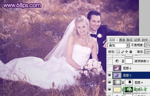 10、按Ctrl + Alt + ~ 调出高光选区,新建一个图层填充颜色:#4706A0,混合模式改为“叠加”,不透明度改为:25%,效果如下图。