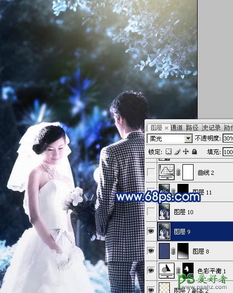 16、新建一个图,盖印图层。图层混合模式改为“柔光”,不透明度改为:30%,效果如下图。