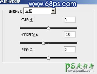 4、创建色相/饱和度调整图层,参数设置如图7,效果如图8。
