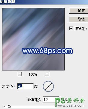 > 模糊 > 动感模糊,参数设置如图17,确定后把图层混合模式改为“叠加”,不透明度改为:60%,效果如图18。