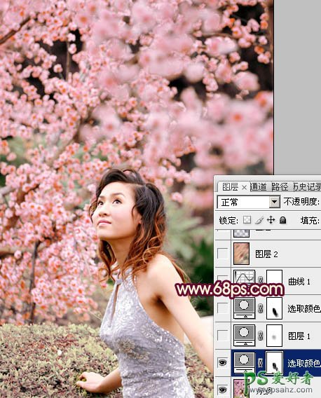 PS调色教程:给春日桃花美女照调出柔美的阳光色