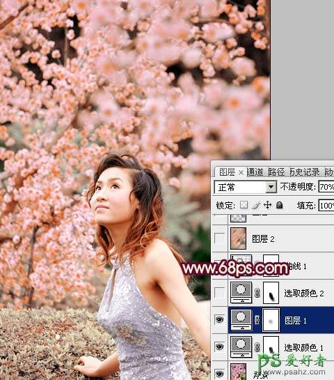 PS调色教程:给春日桃花美女照调出柔美的阳光色