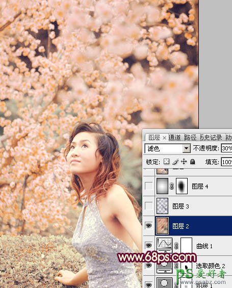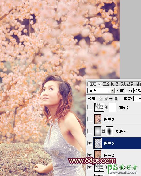 6、按Ctrl + Alt + ~ 调出高光选区,按Ctrl + Shift + I 反选,新建一个图层填充颜色:#33066F,混合模式改为“滤色”,不透明度改为:60%,效果如下图。