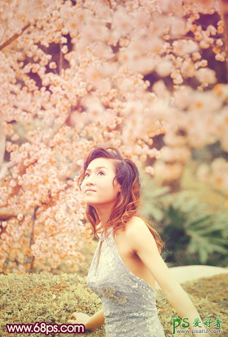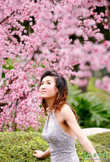 今天我们来学习一篇PS照片后期调色实例教程,PS调色教程:给春日桃花美女照调出柔美的阳光色,本教程介绍简单的粉红色图片调色方法。过程比较简单,只需要用调色工具把素材图片中的主色调成粉色,然后再适当柔化处理并加上高光和补色等即可。