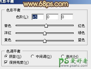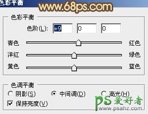 13、创建色彩平衡调整图层,对阴影,中间调,高光进行调整,参数设置如图21 - 23,确定后把图层不透明度改为:50%,效果如图24。