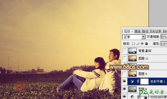 photoshop调出金色夕阳下浪漫情侣外景图片特效