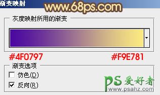 2、再创建渐变映射调整图层,颜色设置如图3,确定后把图层混合模式改为“颜色”,不透明度改为:30%,效果如图4。