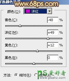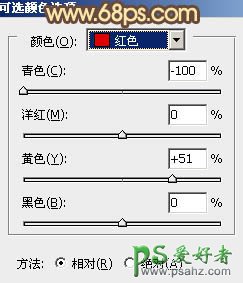 4、创建可选颜色调整图层,对红色及洋红进行调整,参数设置如图6,7,效果如图8。