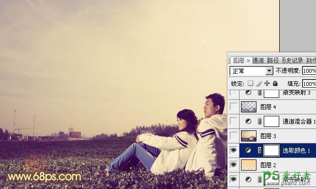 photoshop调出金色夕阳下浪漫情侣外景图片特效