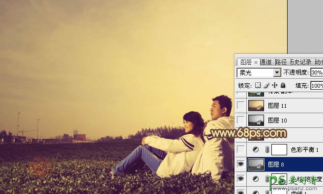 12、新建一个图层,盖印图层。按Ctrl + Shift + U 去色,混合模式改为“柔光”,不透明度改为:30%,效果如下图。